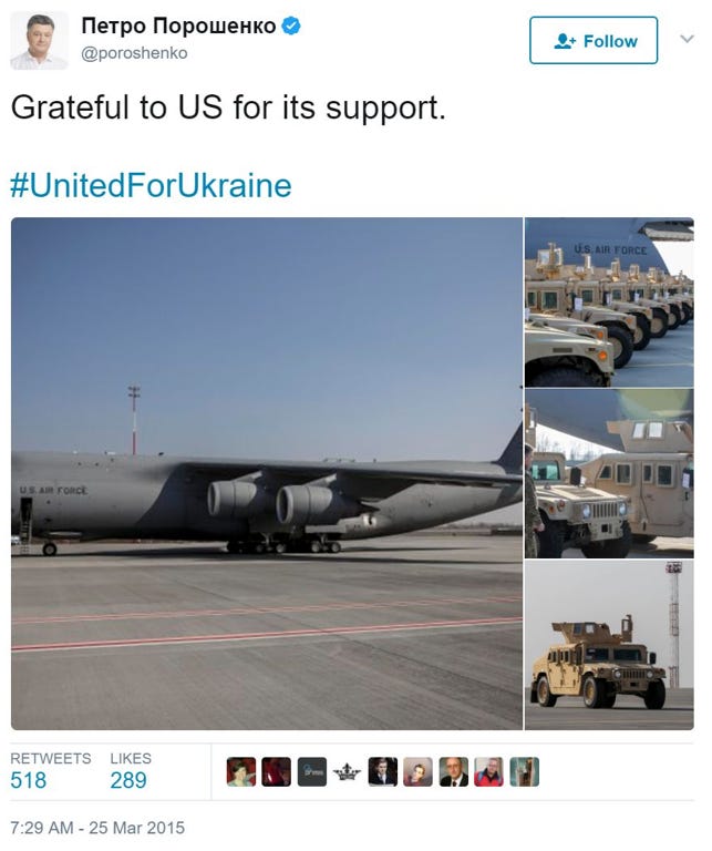 The goal was to receive American and European support to wage war on the rebels. They succeeded. By early 2015, the American Senate approved a resolution by Ron Johnson to send $350 million dollars worth of military support to Ukraine, “condemning the deliberate targeting of civilians by Russian-backed rebels”.46